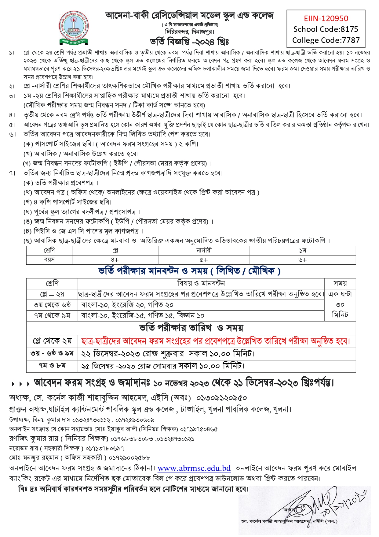 বিস্তারিত তথ্য জানতে ফেসবুক পেইজ Amena Baki Residential Model School and College Official ভিজিট করুন।